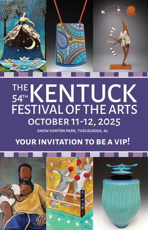 Festival proceeds help support the funding of next year’s Festival and the year-round programming of Kentuck Art Center (a 501(c)3 nonprofit organization) located in Northport, Alabama and Tuscaloosa, Alabama. Kentuck Art Center houses resident artists' studios, exhibition spaces, workshop space, a community clay studio, and a Gallery Shop. Kentuck at Queen City, Kentuck's recent expansion, houses Kentuck's Permanent Collection, and hosts Art Markets, First Fridays, and select workshops. Kentuck presents regular exhibitions, showcasing southern folk artists as well as traditional and contemporary American craft by both established and emerging artists. Support Kentuck all year 'round by becoming a member today!