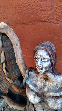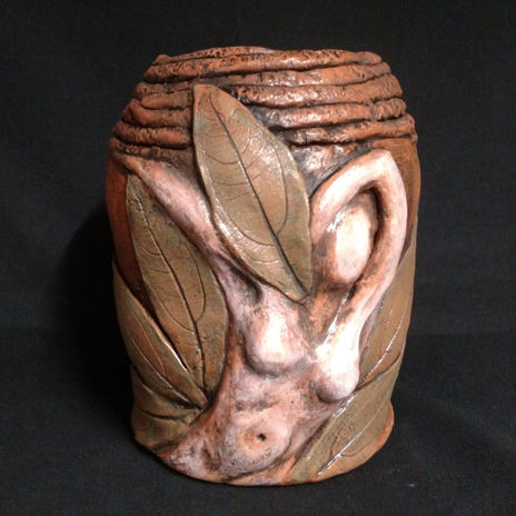 As an artist originally from Tuscaloosa, Alabama, Hayes Dobbins works out of a community studio with the Kentuck Red Dog Potters. Dobbins studied art at the University of Montevallo and earned a BFA concentrating in ceramic sculpture. Her work is inspired by walks in the woods where she envisions figures emerging from the trees. The figures appear as vines, branches, and tree textures mingling with her dresses, expressing a human relationship with nature. Dobbins mixed media winged figures are emerging and metamorphosing from elements of trees, spreading their wings and taking flight. Her sculptures are mostly self-portraits representing the struggles and triumphs over our human condition. She uses wild, naturally occurring clay that is harvested from the creek and riverbanks. Processing the clay makes her feel grounded and more closely connected to mother earth. Her process uses the five elements: earth, fire, water, air, and spirit.