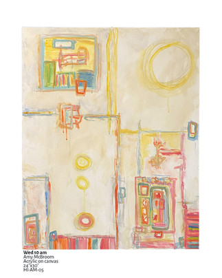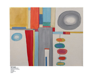 Painting abstract acrylics on stretched canvas, Amy McBroom is drawn to the common, simple nature of her materials. However "ordinary" these materials may be, Amy utilizes them to convey complex messages that bind humanity through color and brush strokes.