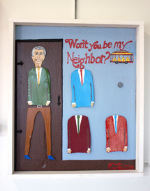There, Harris began devoting more time to the art he had begun creating in Nashville. What began with novels carved into concrete, evolved to include interactive pieces inspired by retro games, paintings done on scraps of roofing tin, and expressive figures he terms "misfits," all done in the colors and found materials that make his work recognizably his. In describing his first music album, Harris called the sound, "narcotic, country, alchemy," and that seems to be a vibe that guides all of his creative pursuits; it's an apt description of his art as well. A found object aesthetic combined with insistent colors elbowing for space creates a folk art fever dream, work that is fun and celebratory but with an edge.