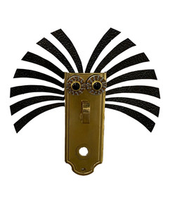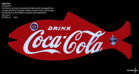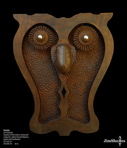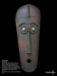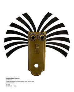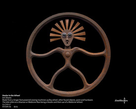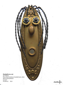 Jim talks about his pieces and his process with a calm sense of confidence and attachment. Some pieces he has had for so long he becomes "almost disappointed" when they sell. Recalling with reminiscent amazement where different parts for his pieces came from, he has an almost 'can you believe it' attitude about a piece's previous function. A common water spout is now a long brooding nose on a piece, taking it from functioning in a kitchen to hanging on a gallery wall.