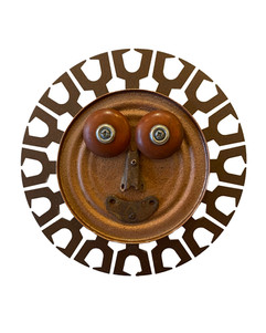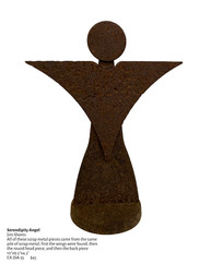 He likes to have fun with the names of his work saying, "I call them different things over time." The names are usually related to sourced materials. The American Flag made from crushed soda cans is aptly named Ameri-Can Flag. There is also a variety to his work which can range from six inch round faces to three foot angelic sculptures.