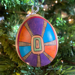 Yep, you read that right! These ornaments are gourds which have been painted by Calera, AL artist Teresa Wamble.