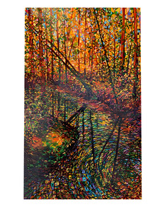 When discussing why she chooses to focus on nature, Lydia explains, "Nature seemed to hold the biggest potential to expose the whole illusion...It's just shapes and repeating patterns." By examining Lydia's work, one can surely see the repetition emerge. Lydia's simplification of these idyllic scenes exposes the triangles, squares, rectangles, and diamonds in the water of a creek bed. This beauty has certainly captured Lydia's eye, and, although these scenes seem extraordinarily peaceful, they are not without excitement.