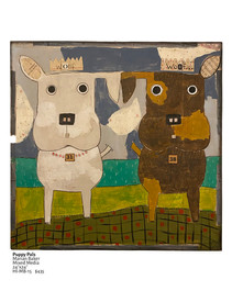 Marian Baker is a contemporary folk artist living in Alabama whose work is widely beloved for the charming scenes & characters pulled straight from her fantastical storybook imagination. Marian's creativity was encouraged by her mother at an early age, and she started out creating portraits from family photos, eventually developing the signature style showcased throughout this exhibition. Marian's artistic appreciation for simple yet vibrant scenes allows for the harmonious coexistence of calm energy which typifies her work with popping bold colors, joyful humor, and a whimsical sense of mystery. Several of her pieces feature numbers, an ode to the artists fascination with lucky numbers. Marian's lucky number is 11, which was regularly featured in her early paintings.